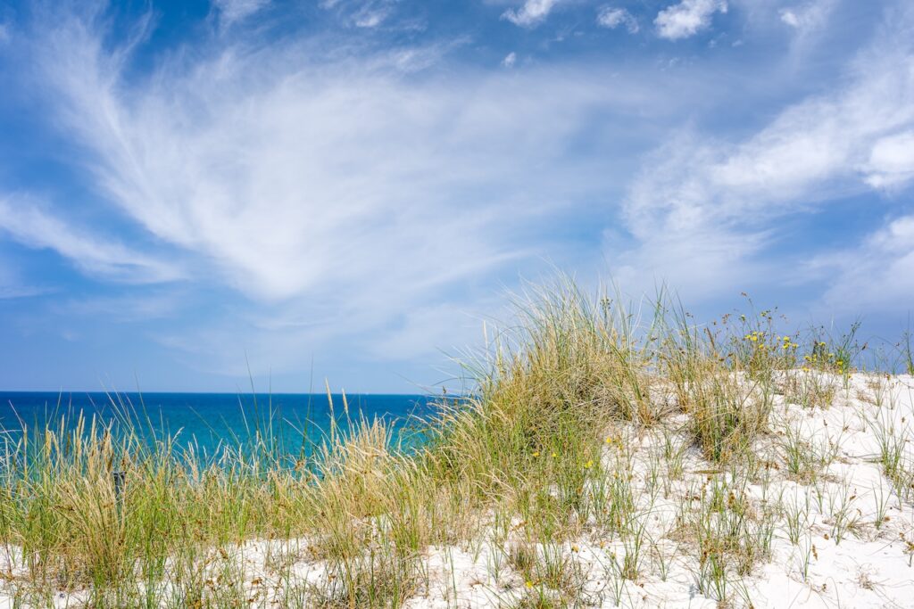 - Dune with beach grass in the foreground. Baltic sea Germany. National Park Vorpommersche Boddenlandschaft